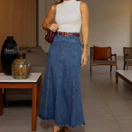 Mia – High-Waisted A-Line Midi Denim Skirt