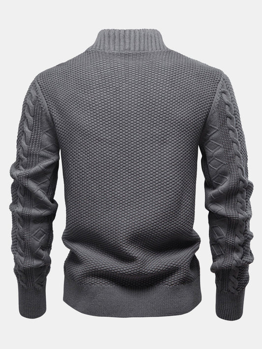 Twist Jacquard Zipper Stand Collar Sweater