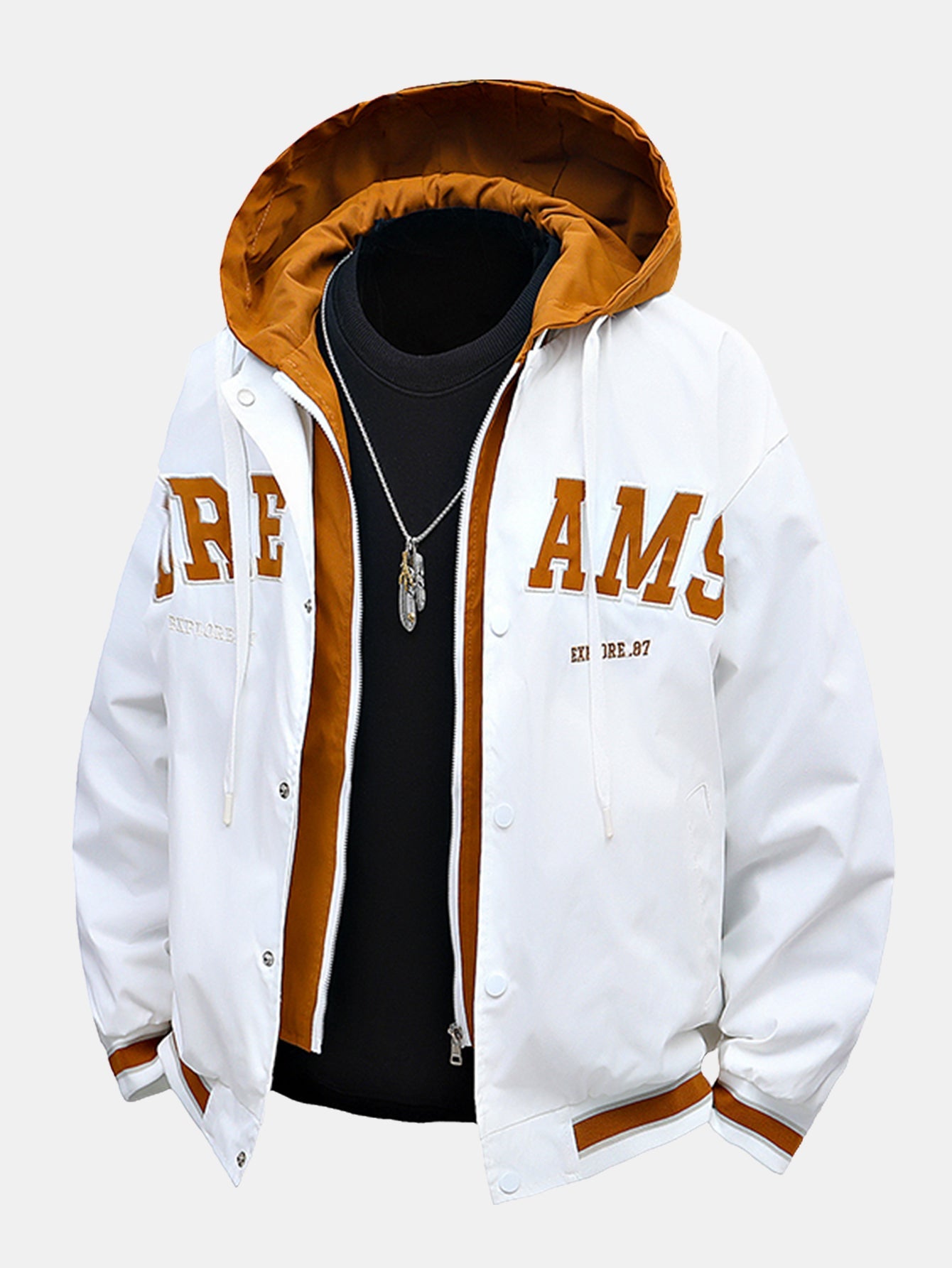 Level up your streetwear game with the streetwear 2 In 1 hooded baseball jacket. Designed with a classic varsity silhouette and a hood insert, this jacket blends athletic style with versatile comfort.